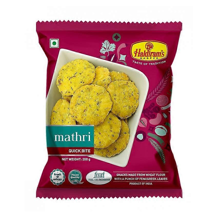 Матхри (Mathri) – это натуральный продукт. Данное индийское печенье приготовлено из рафинированной пшеничной муки, растительного масла с добавлением специй: черного перца, ажгона, красного перца чили и куркумы. Сладость имеет оригинальный вкус и пикантные нотки благодаря овощам, имбирю и пажитнику. С этим ароматным печеньем каждое чаепитие станет истинным наслаждением. Продукт содержит глютен и аллергенные компоненты.