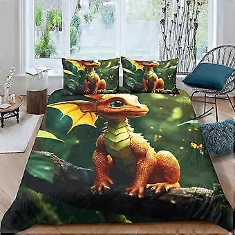 Conjunto de capa de edredão de dragão de desenho animado com zíper macio e fronha para cama de casal