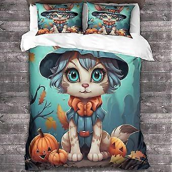 Conjunto de capa de edredom para gato de 3 peças 3D Halloween impresso com tema animal Capa de colcha com fecho de zíper, cama de microfibra para casal