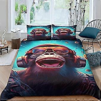 Capa de edredão de macaco animal Conjunto de 3 peças Capa de colcha de microfibra de qualidade de hotel macia de um lado com fecho de zíper Conjunto de cama duplo