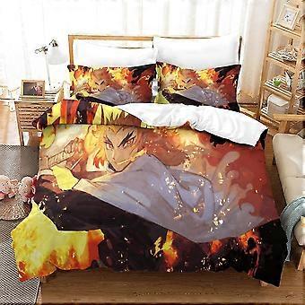 Conjunto de Cama Impresso em 3D com Personagens de Anime, Conjunto de Capa de Edredom para Meninos, Decoração de Quarto Temática Rengoku Kyoujurou para Adolescentes