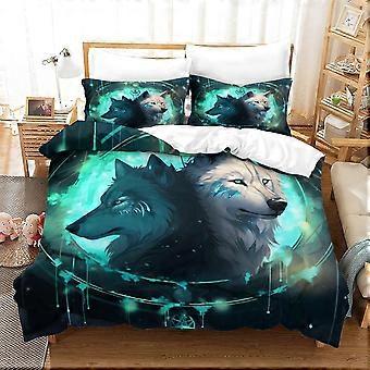 Conjunto de capa de edredom de cama impressa em 3D Wolf para adultos e crianças, tamanho king, sem edredom