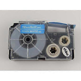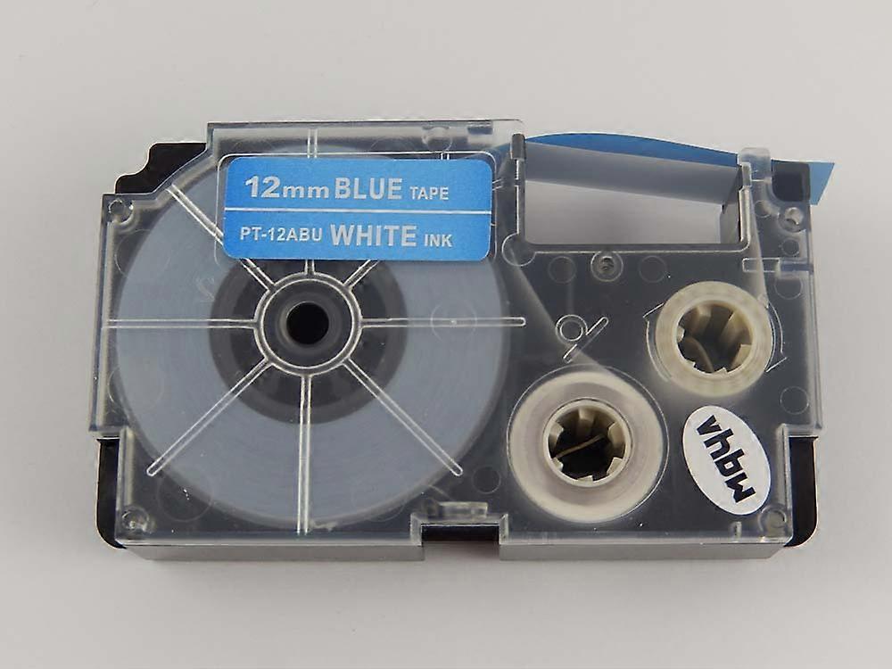 vhbw Schriftband-Kassette kompatibel mit Casio KL-750E, KL-8100, KL-7400, KL-780, KL-7200 Etiketten-Drucker 8m x 12mm Weiß auf Blau, Kunststoff