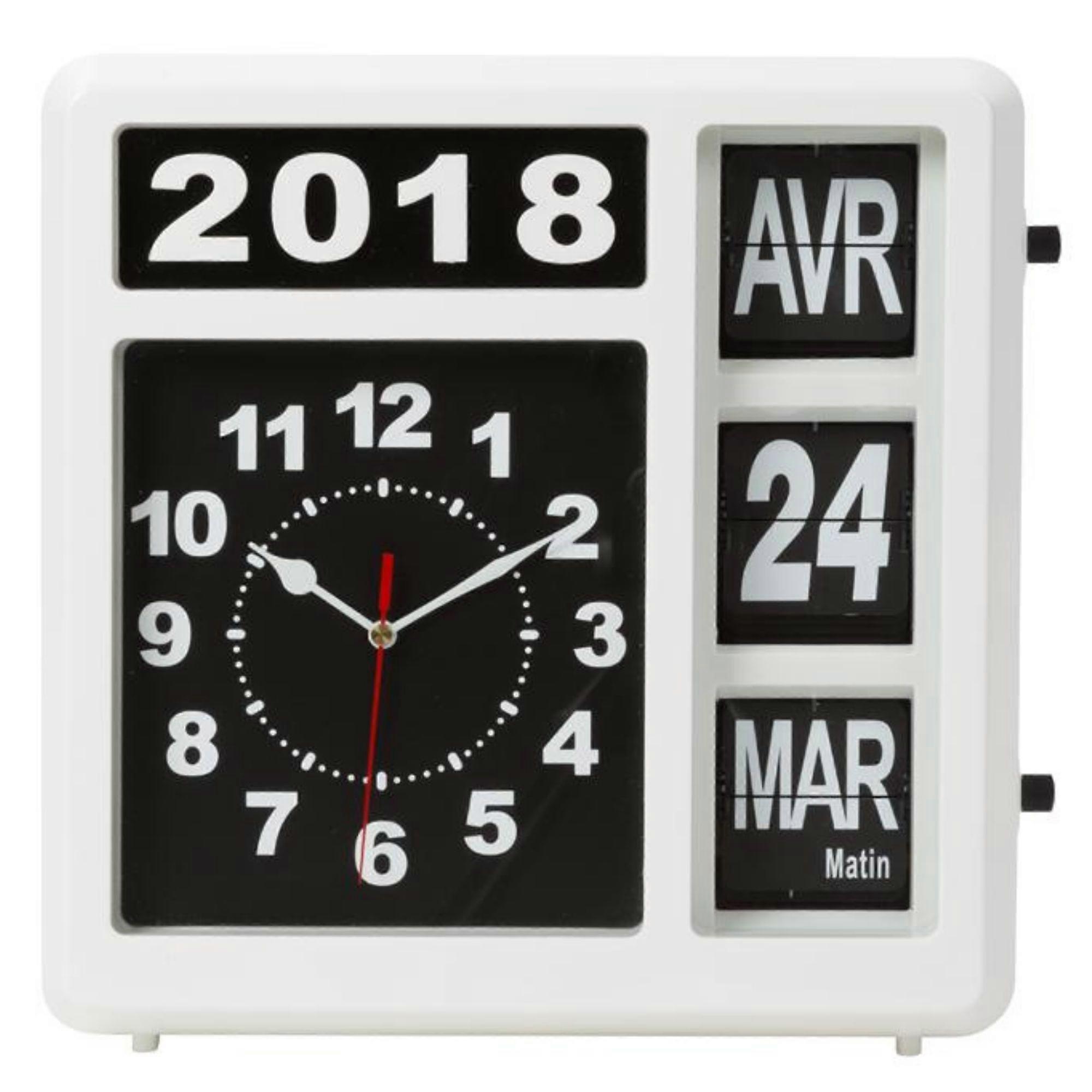 Perel Analoge kalenderklok 31×31 cm met groot flip-over display, Franse dag en