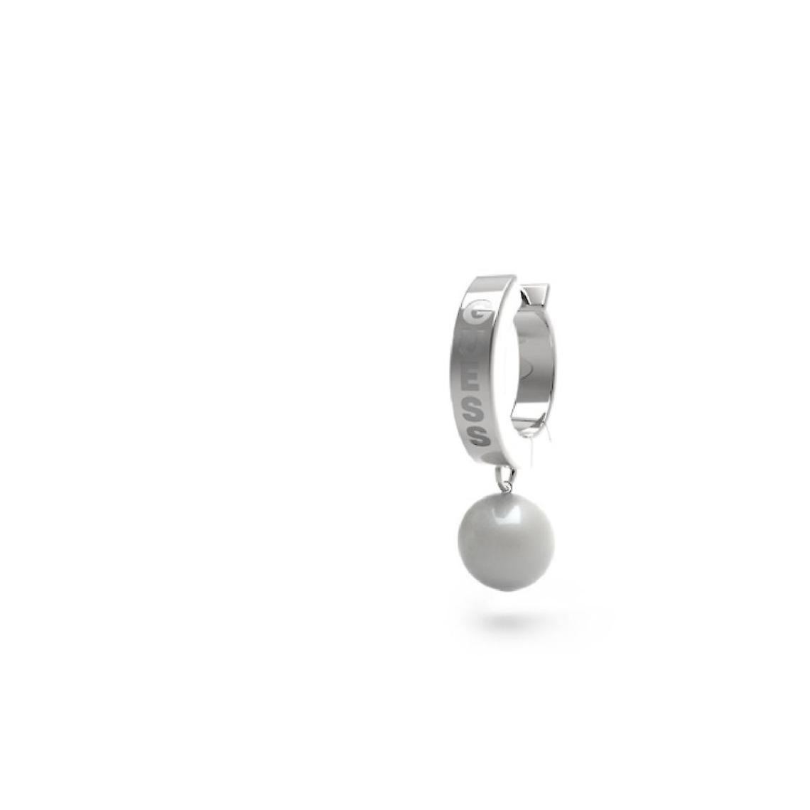 Boucles D'Oreille Edgy Styles Acier Rhodié Et Pampille Perle 24 Mm