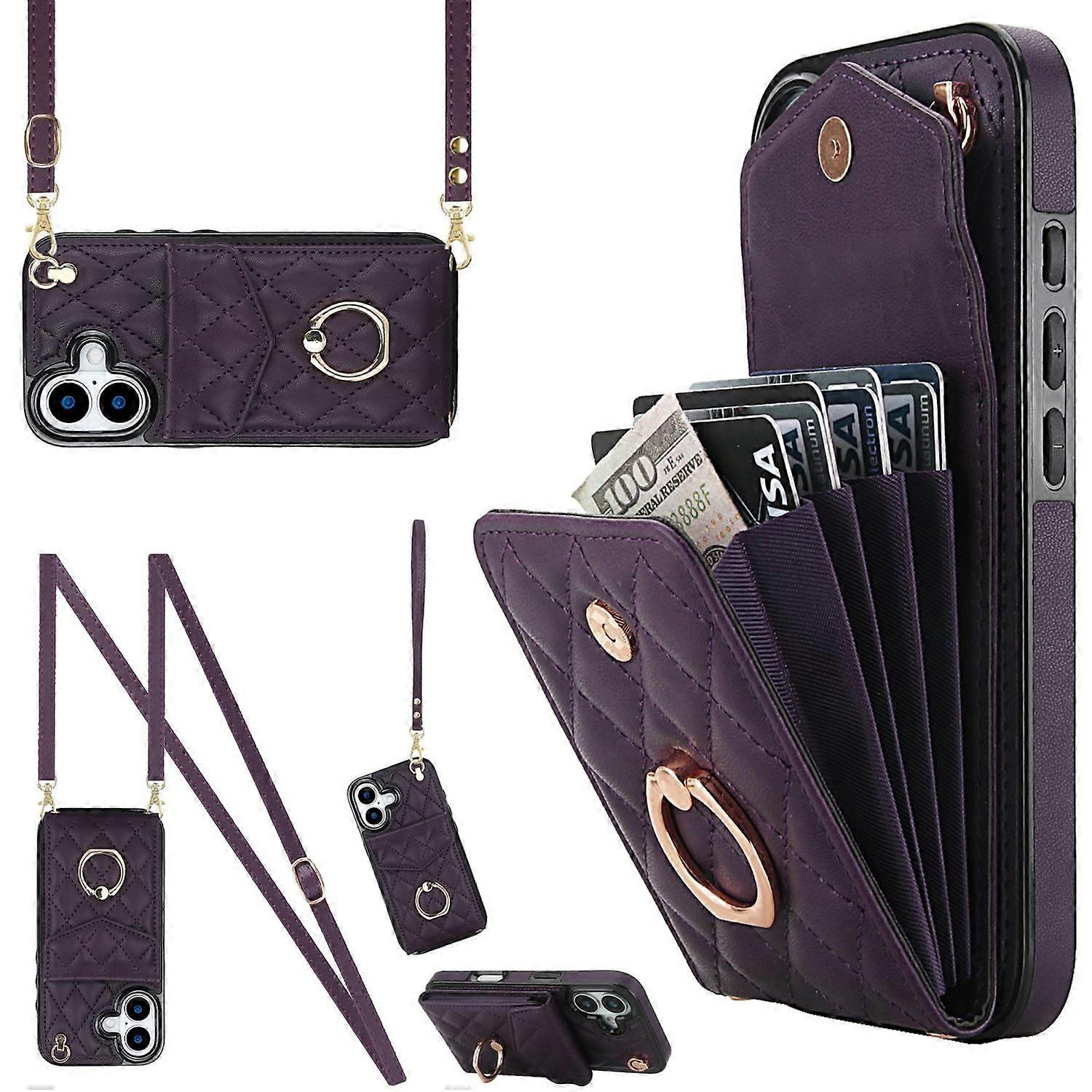 Für Apple iPhone 17 Crossbody Kunstleder Rhombic Design Hülle Lila