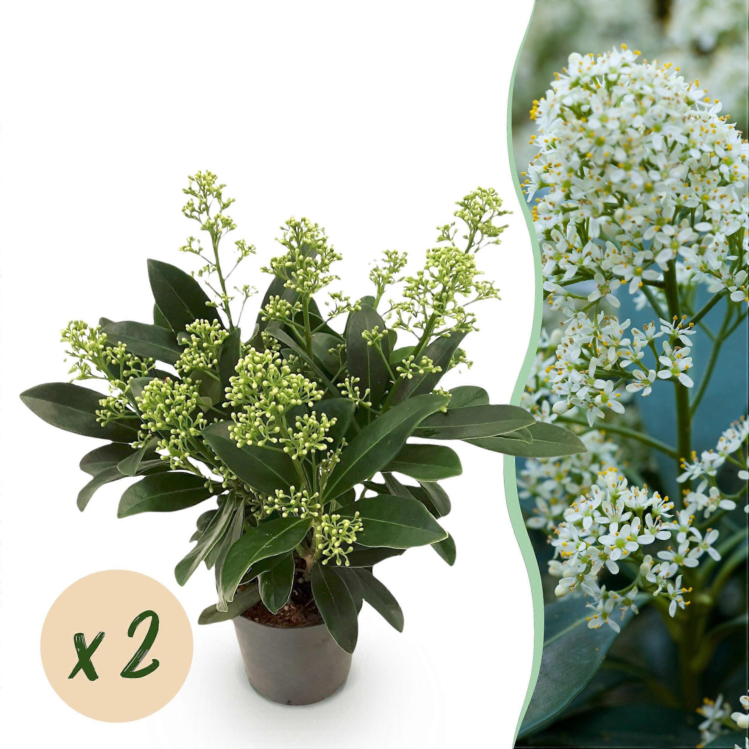 Skimmia japonica Finchy - Bloem Wit - 10+ Bloemen - 2 Planten - Winterhard - 25cm - Ø10,5cm