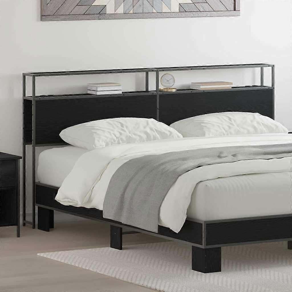 Stauraum-Kopfteil Schwarz Eichen-Optik 200 cm Holzwerkstoff