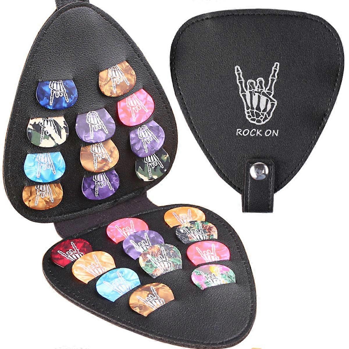 INF ROCK ON Plektrumhållare med 22 Plektrum Fodral i PU-läder