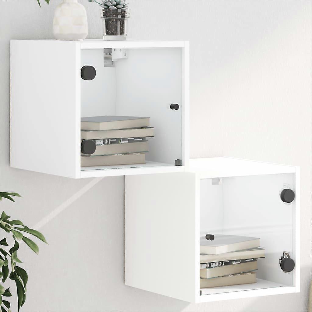 Nachttische mit Glastüren 2 Stk. Weiß 35x37x35 cm