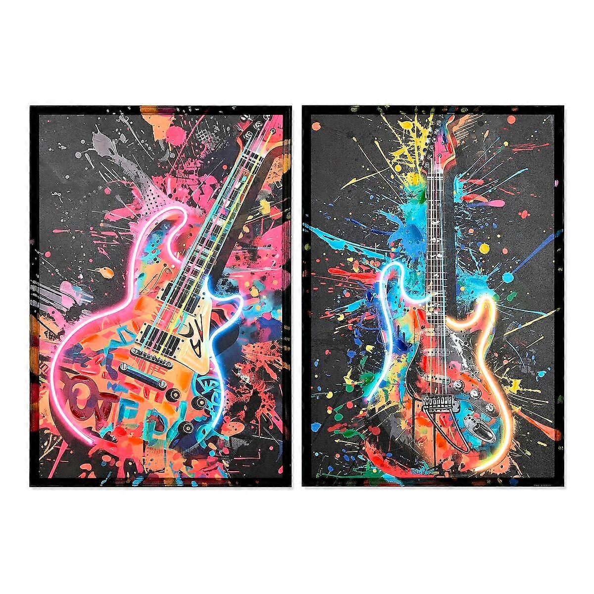 Leinwand Home ESPRIT Schwarz Gitarre Loft 63 x 3,7 x 93 cm (2 Stück)