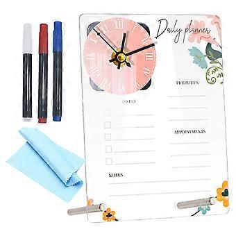 1 Set of Acrylic Memo Writing Board Transparent Memo Board with Clock Desktop Acrylic Board