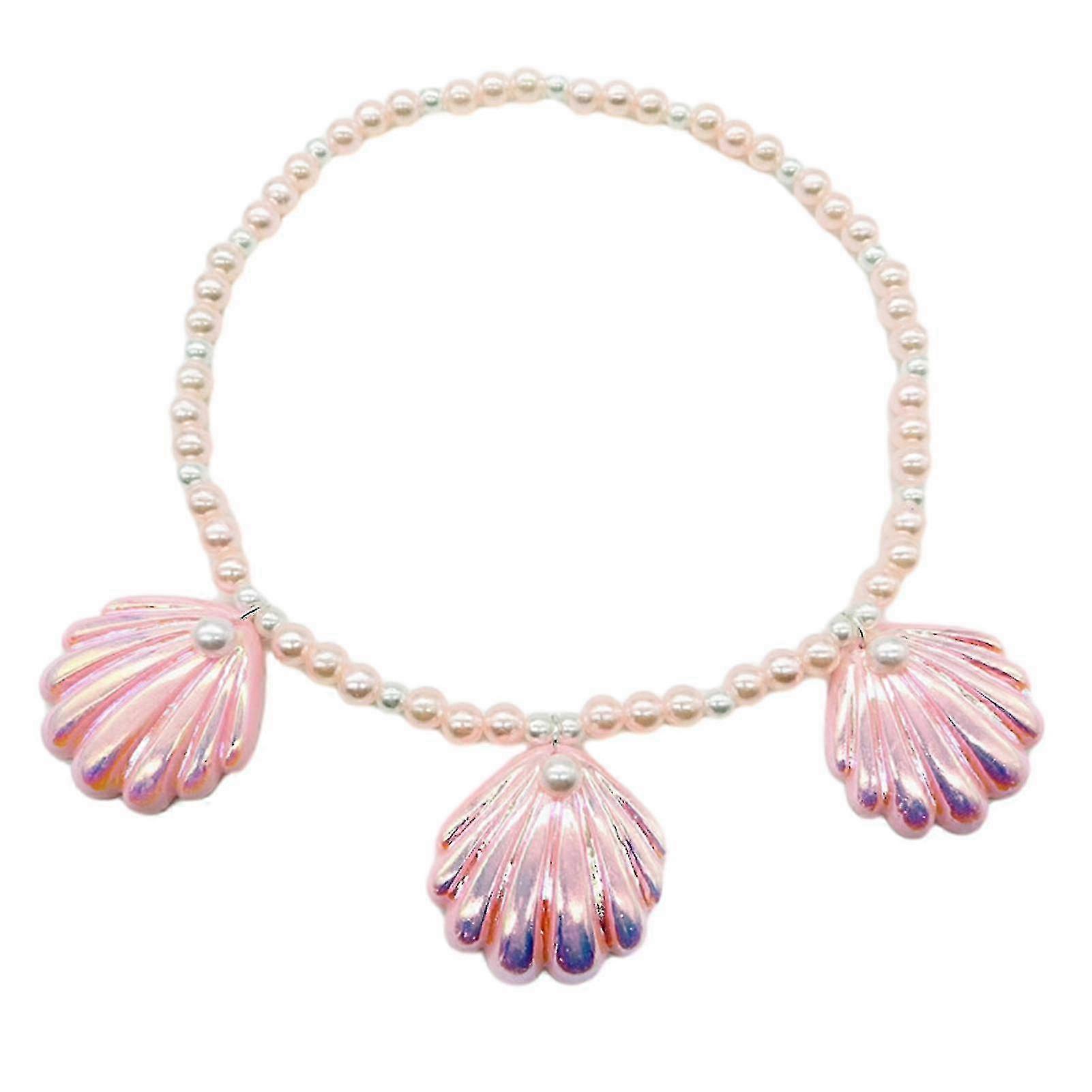 1 Set Shell Necklace Mermaid Jewelry Set Pink With Faux Pearl Bracelet Ear Clip Eco-friendly Shell Necklace