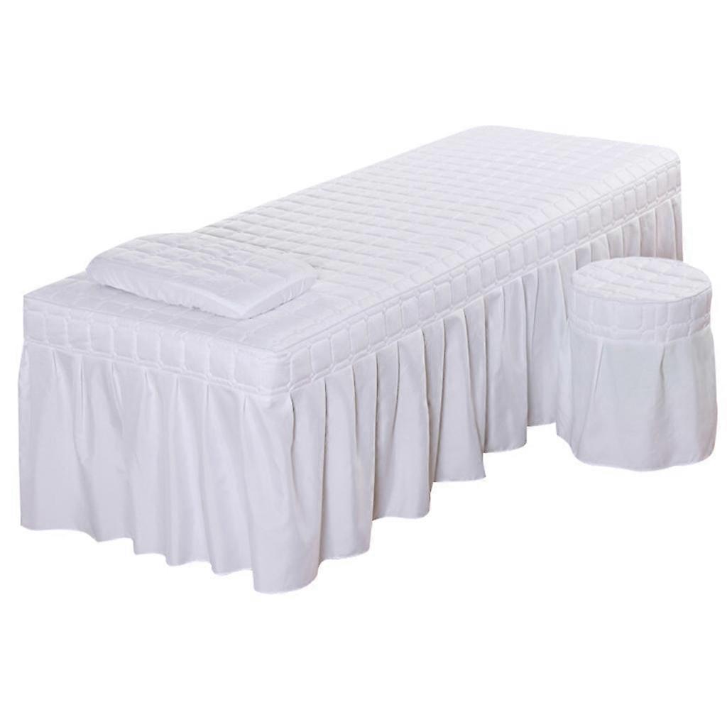 1 Set of Beauty Massage Bed Sheet with Hole Pillowcase & Stool Cover White