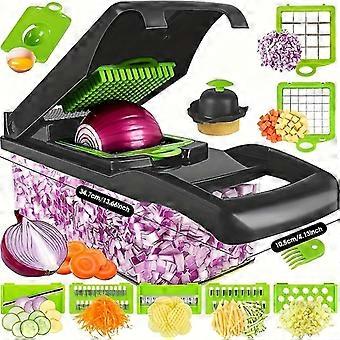 1 conjunto de picador de legumes de cozinha, comida 15 em 1 com 8 lâminas de aço inoxidável e recipiente - ideal para fatiar cebolas, alho e - 13,7x4.