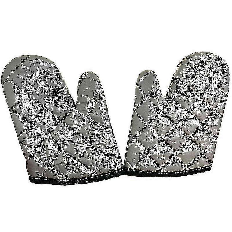 1 Pair Skin-friendly Oven Gloves Wear Resistant Fabric Extra Length Heat Insulated Glove for Home - Happy H