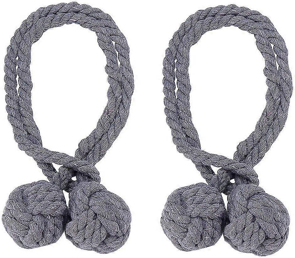 1 Pair of Hand Knitted Natural Cotton Curtain Tiebacks with Double Ball (Grey)