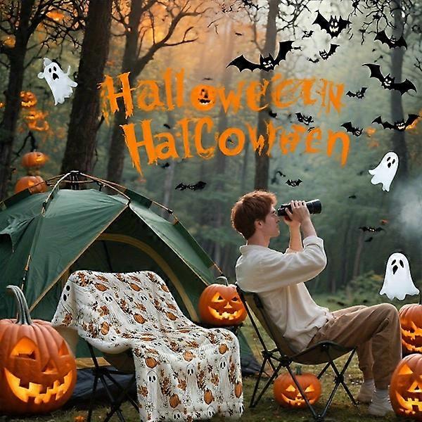 1 pc Halloween Pumpkin & Ghost Patchwork Blanket - Cozy Polyester Knitted Throw for Home, Travel and Picnics - Versatile All Season G [DB] yc