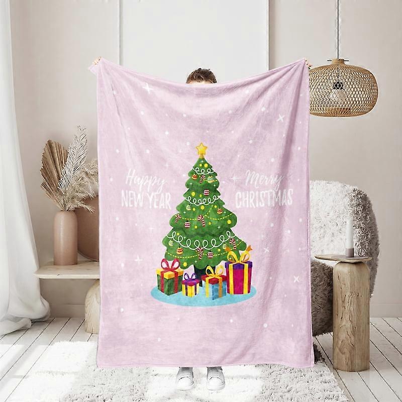 1 piece of flannel pink Christmas tree print blanket, soft sofa, air-conditioned room cover blanket, Christmas gift