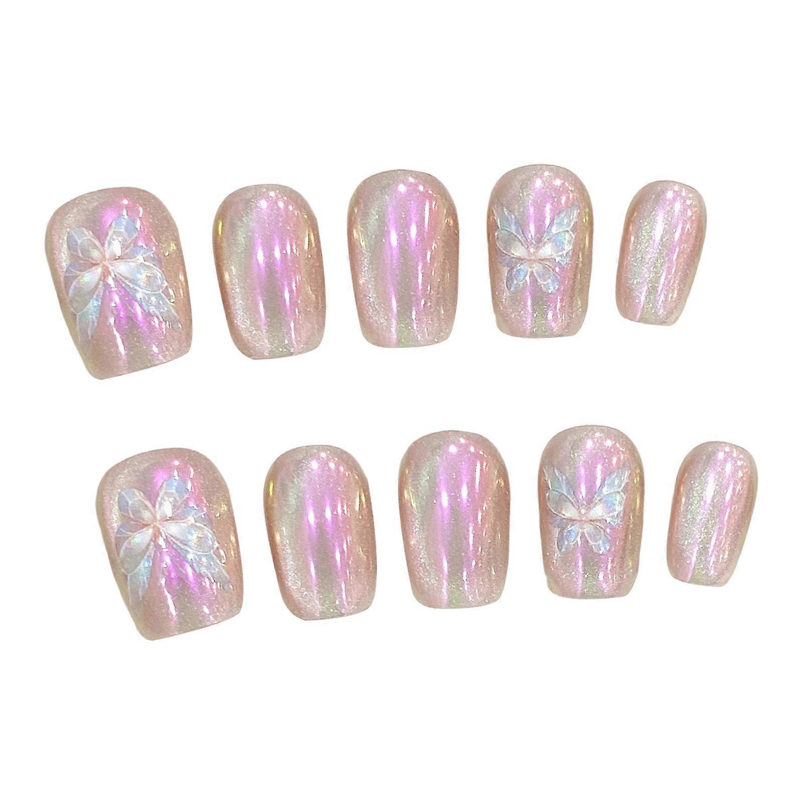 Features: Long-lasting and Durable: These Pink False Nails with Butterfly Decor are made with premium-quality materials, ensuring they are durable and long-lasting. They won't easily break or split, providing you with a reliable and comfortable nail enhancement option. Easy to Apply: Our 10PCS Glossy Purple Press on Nails are designed for hassle-free application. Simply press them onto your natural nails for an instant salon-like manicure without the need for glue or professional assistance. Perfect for women and girls who enjoy DIY nail decoration. Eye-catching Design: The Pink Nails with Flash Glitter feature a stunning design that adds a touch of glamour to your nails. The flash glitter creates a mesmerizing effect, making your nails stand out and perfect for hot girl dress matching. Natural and Comfortable: These Natural Unbreakable Nail Simple Wear nails provide a natural look and feel. They are ultra-flexible, ensuring a comfortable fit on your nails. Say goodbye to uncomfortable and bulky fake nails and enjoy the simplicity and comfort of these natural-looking nails. Versatile Usage: Suitable for both nail salons and personal use, these Durable & Never Splitting Comfort Fake Nails are perfect for various occasions. Whether you want to enhance your nails for a special event or add a stylish touch to your everyday look, these nails are a great choice for nail salon professionals and nail enthusiasts alike. Specification: Material: Resin Size,Thumb(mm),Index Finger(mm),Middle Finger(mm),The Fourth Finger(mm),Little Finger(mm) XS,14,10,11,10,7 S,15,11,12,11,8 M,16,12,13,12,9 L,17,13,14,13,10 Notes: Please allow slight tolerances in size due to manual measurement, and lighting in photography may result in a difference in color than in real. Include: 1 Set * False nails (10pcs included) 10PCS * Jelly glue 1 * Nail rub strip