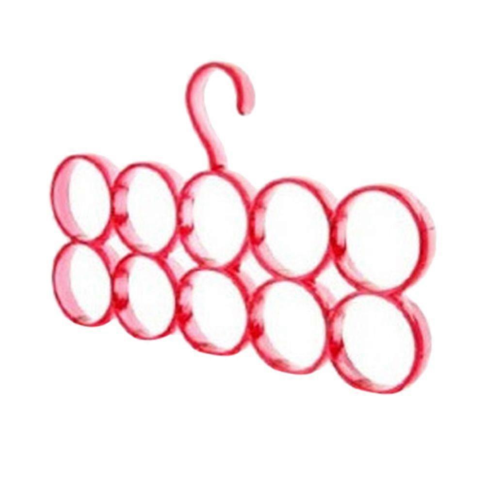10 Rings Plastic Coat Hanger Multifunctional Circle Shape Scarf Belt Tie Display Slots Holder Hole Design Bathrobe Organizer (Red)