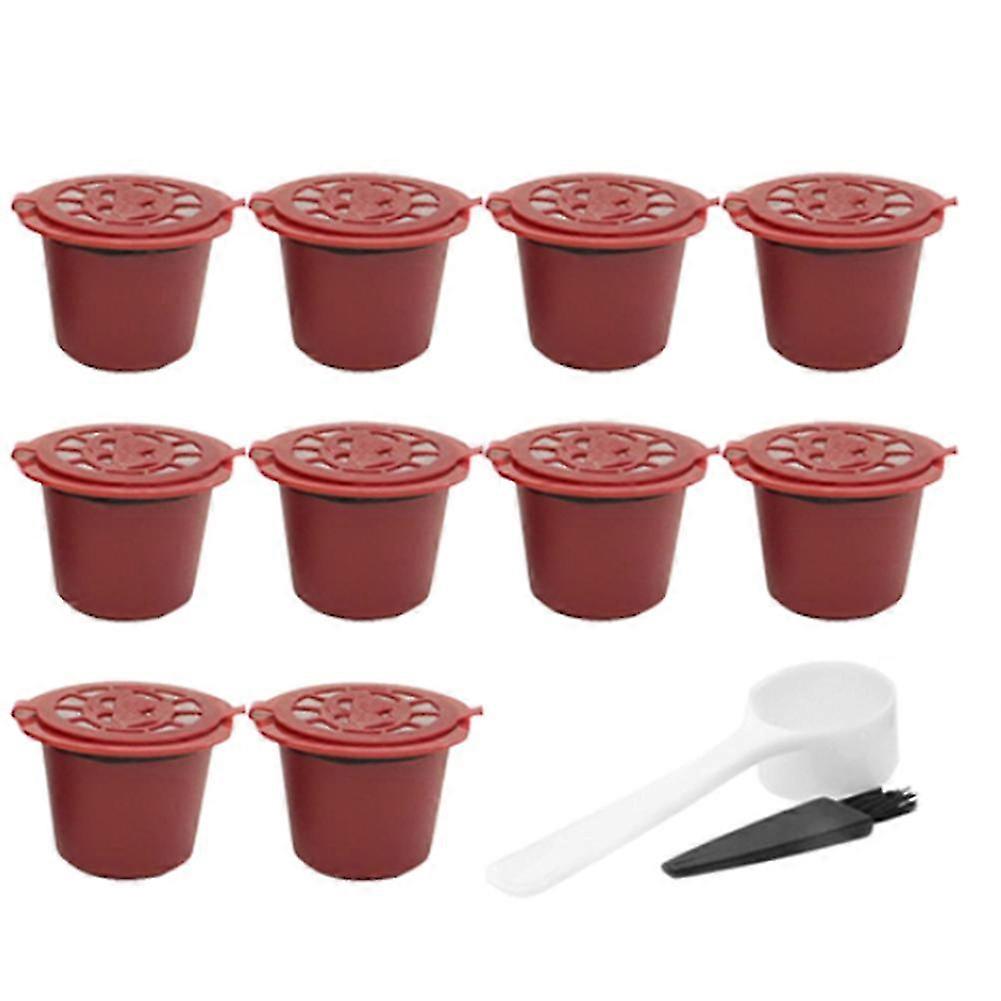 10 Reusable Refillable Coffee Capsule Filters with Scoop & Brush for Most Coffee Machines Accessories