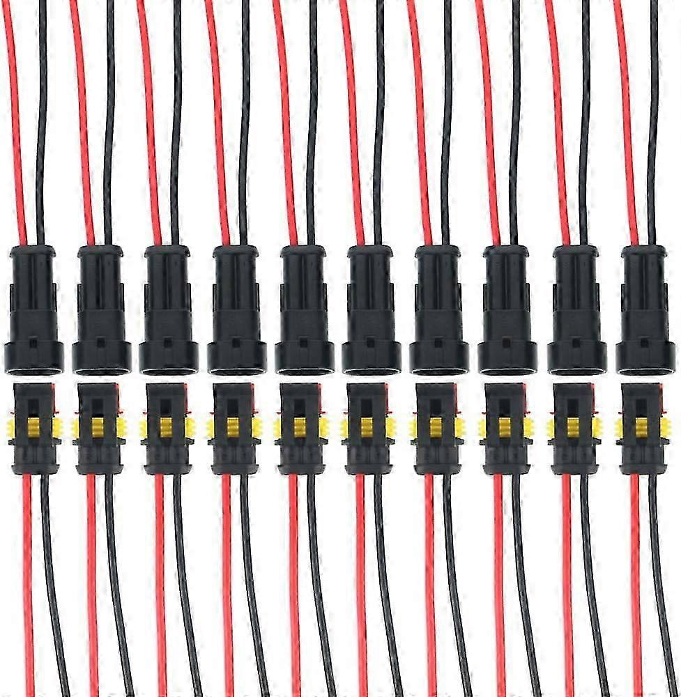 10 Kits 2 Pin Car Waterproof Electrical Connector with Wire Car Plug Waterproof Dustproof Insulated and Sealed 25-26