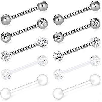 10 Silver Tongue Piercing Nipple Piercing Bar 316l Surgical Steel Set 12mm