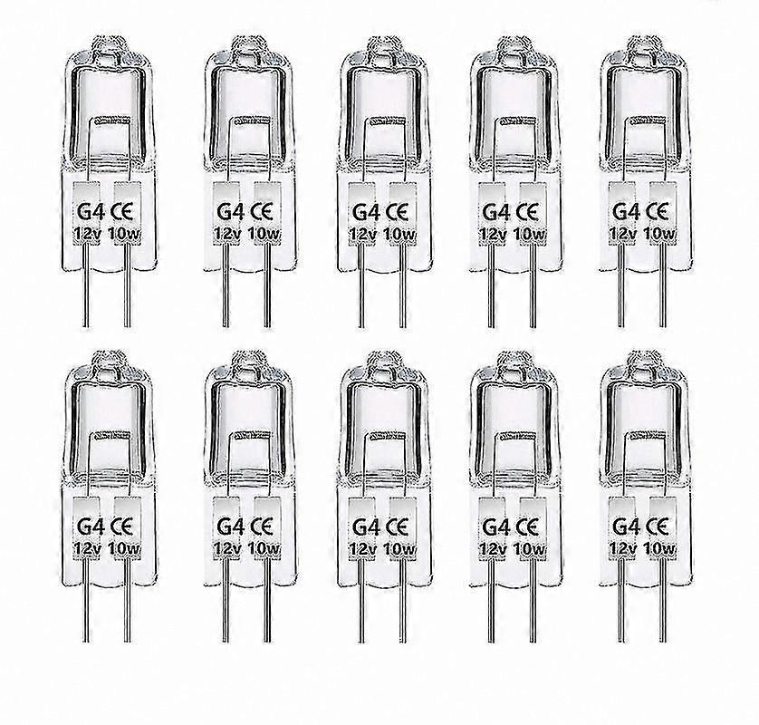 10-Pack Dimmable G4 Halogen Bulbs, 10W 12V Warm White Clear Capsule with 2-Pin Base for Lighting Applications