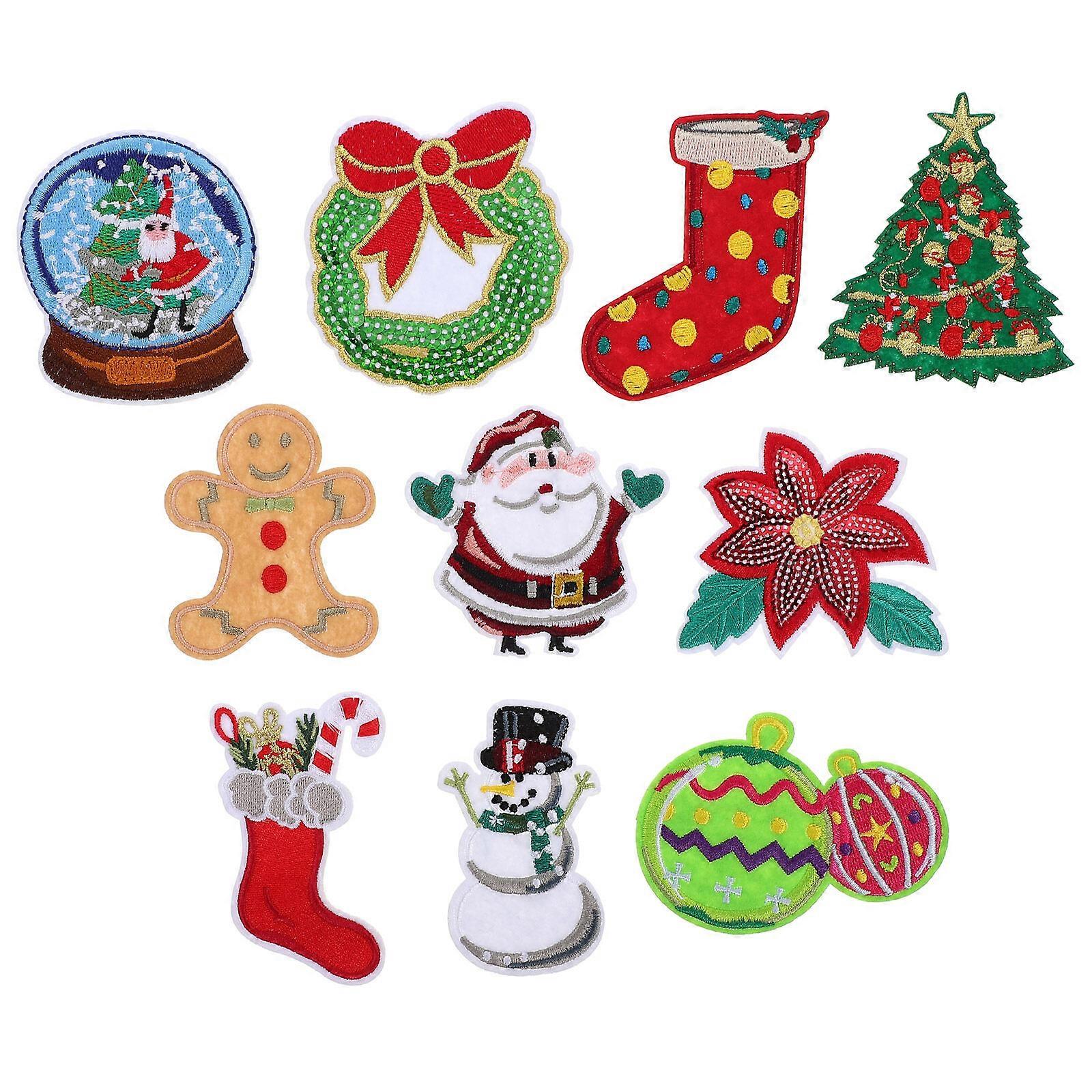 10 Pcs Sequin Applique Christmas Sew Patches Embroidered Iron Patch Clothing Repairing Patch Santa Claus Patch