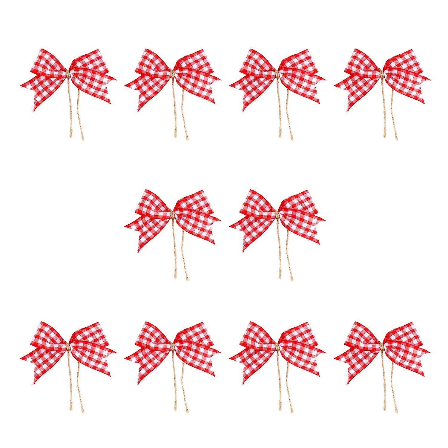 10Pcs/Set Christmas Plaid Bowknot Red Black White Hemp Rope Reusable Xmas Tree Gift Box Wreath