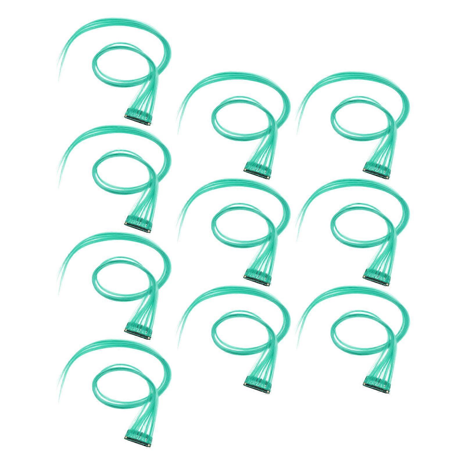 10Pcs Green Clip on Hair Extensions for Hair Styling Colored Highlight Synthetic