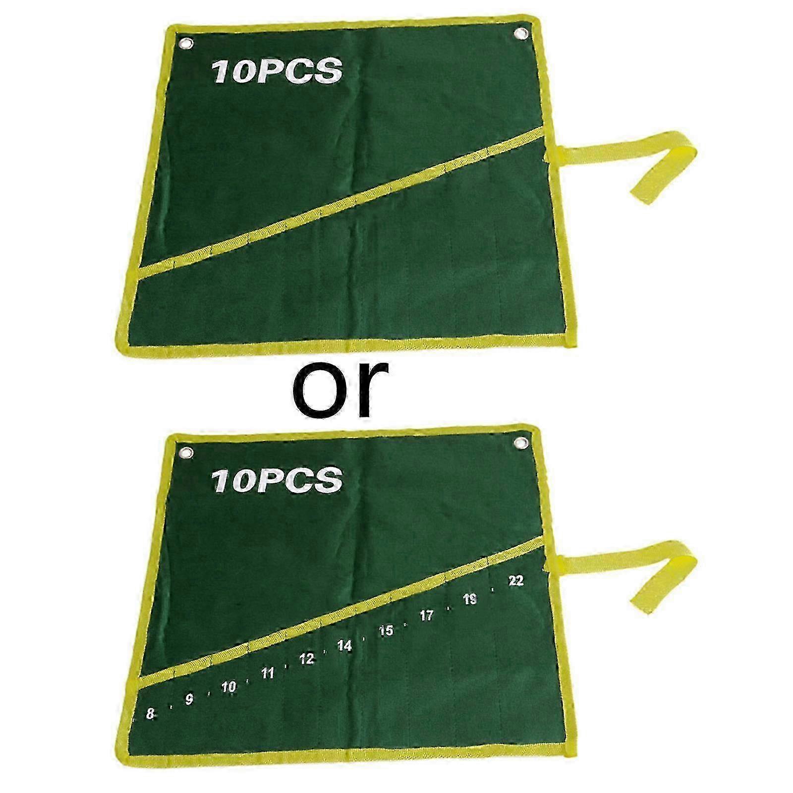 10 Pockets Durable Canvas Spanner Wrench Tool Roll Up Storage Bag Green