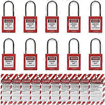 10 Red Lockout Tagout Locks com 10 Lock Out Tag Out Tags, chaveado diferente, Compatível com travas de segurança (vermelho, chaveado diferente)