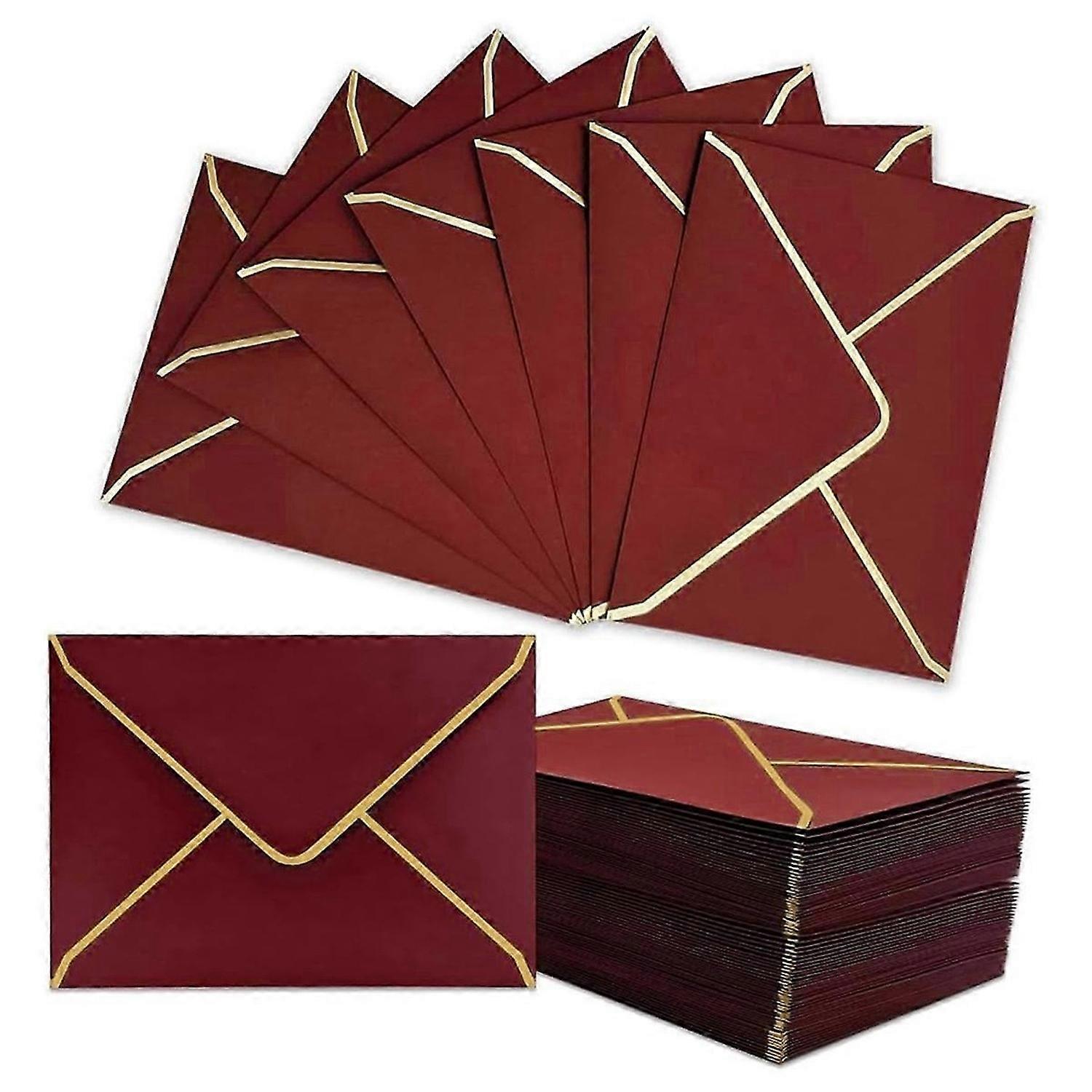 100 PCS A7 Burgundy Invitation Envelopes with Gold Border, 5x7 Inch