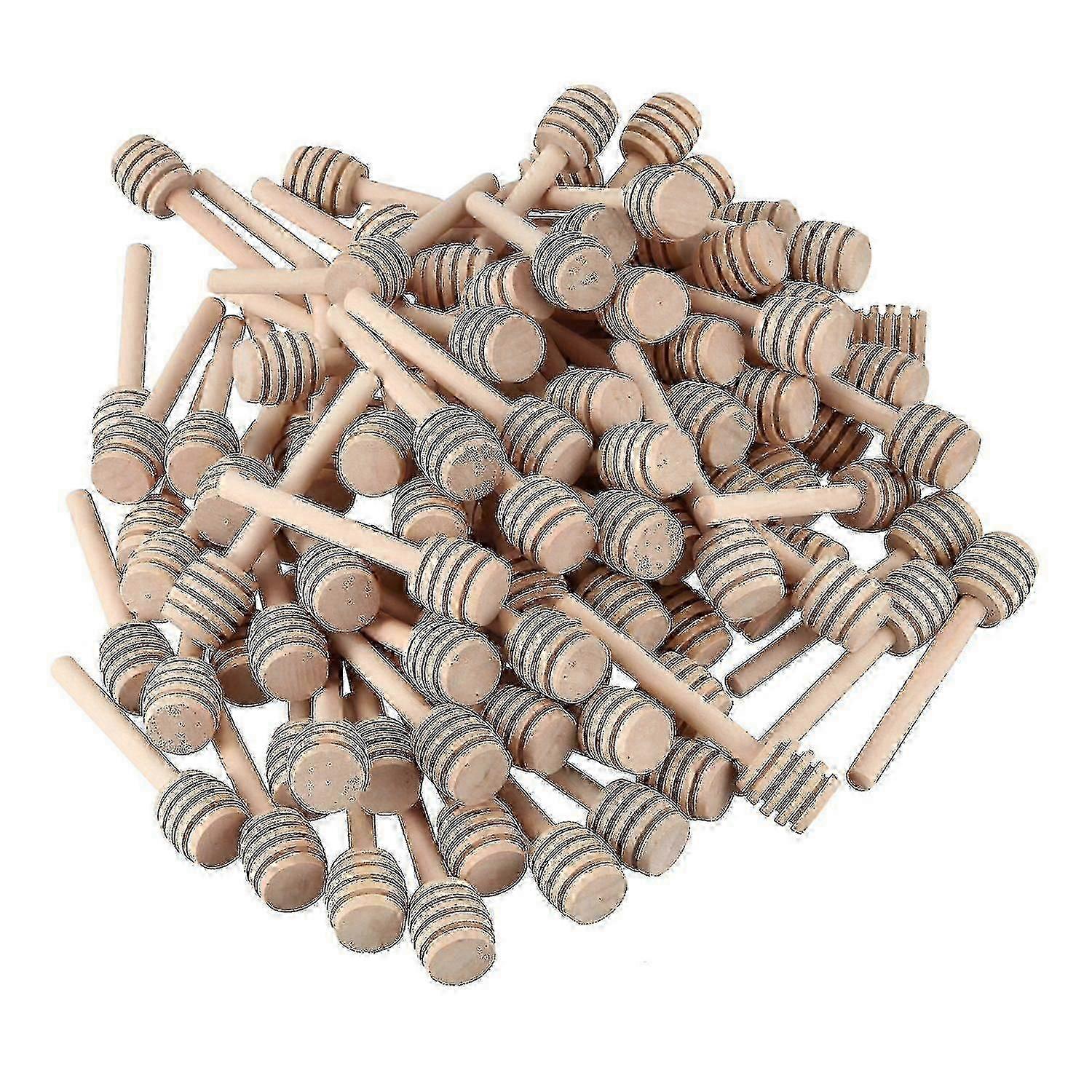 The grooves on these wooden dippers help you collect and dispense honey from the jar. stick are individually wrapped, perfect mini size suit for 1-4 oz honey jars in your kitchen, at the dinner table. Best honey dippers for wedding and party favors, or as holiday gifts. colour:Wood color Material:100 percent natural wood, food-grade safe. size:8x1.5cm Package Contents: 100 x honey dip sticks Only the above package content, other products are not included. Note: Light and different displays may cause the color of the item in the picture a little different from the real thing. The measurement allowed error is 1-3cm.