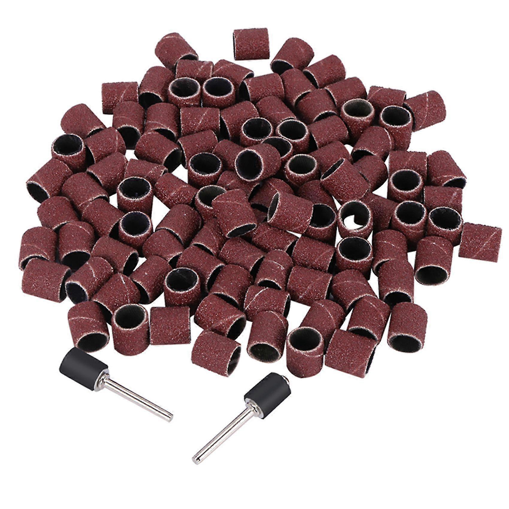 100 Pcs 3/8 Inch 80 Grit Sandpaper Circle With 2 Mandrels For Polishing Tool