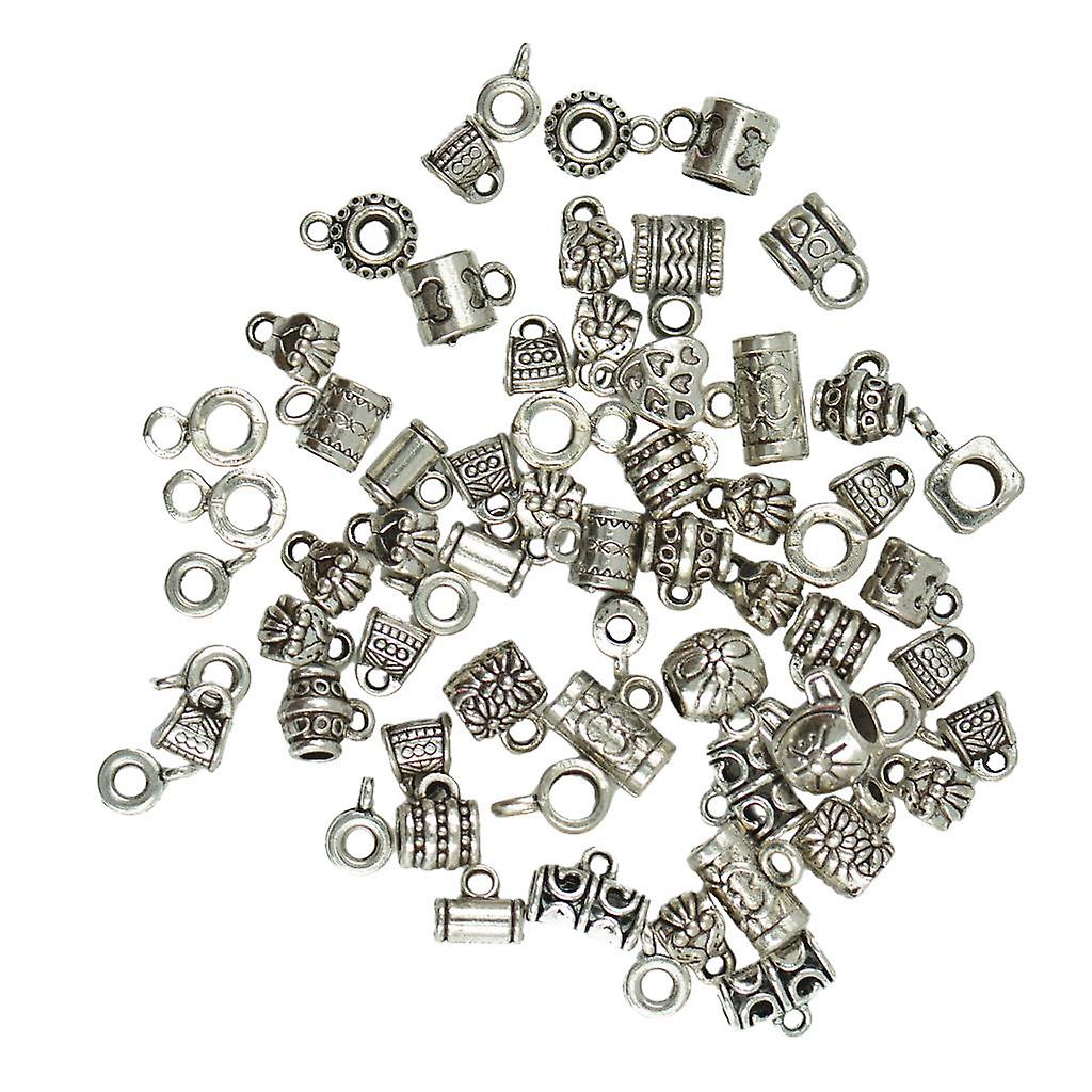 A wonderfulRandom mixset of Antique Silver Charmsfrom over 20 styles of vintagestyle hanger bailbeads.Exquisite and fine workmanship.Can be used to make necklaces, bracelets, anklets, other jewelry projects, steampunk creations, wedding decorations, and scrapbooking,Also can be used as decorative zippers, also be used as other hand-crafted creative DIY accessories. Description: Great DIY accessories for necklaces, bracelets,Anklets and other fashion accessories makingCan give your designs a professional touchMaterial: Zinc AlloySize : Approx. 9-12 mm (not including small ring)Color: Antique SilverQuantity:100PcsOuter Diameter: Approx. 6 - 8 mmInner Diameter: Approx.3 - 4.5mmSmall Ring Inner Diameter: Approx. 0.08 inch / 2mm Package Includes: 100 x Bail Slider Charms DIY Jewelry Note:Items are a mix and will be sent randomly, pictures will not 100% representative of what you receive.Since the size above is measured by hand, the size of the actual item you received could be slightly different from the size above. Meanwhile, please be reminded that due to lighting effects, monitor's brightness / contrast settings etc, there could be some slight differences in the color of the pictures and the actual item.
