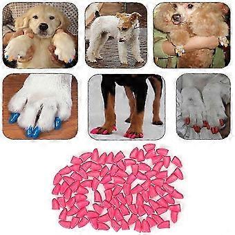 100PCS Pet Dog Soft PVC Nail Cover Paw Claw Cap Wrap Grooming Accessory (Dark Pink L)