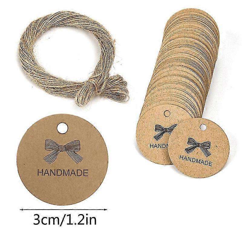 100Pcs Gift Tags, Handmade with Love Tags Kraft Paper Round Gift Tags Craft Card Tags with String
