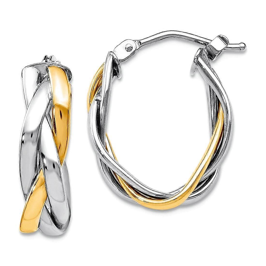 10k With White Rhodium Plating Braided Hoop Earrings 21x15mm Wide 5mm Thick-Hoop Earring for Women