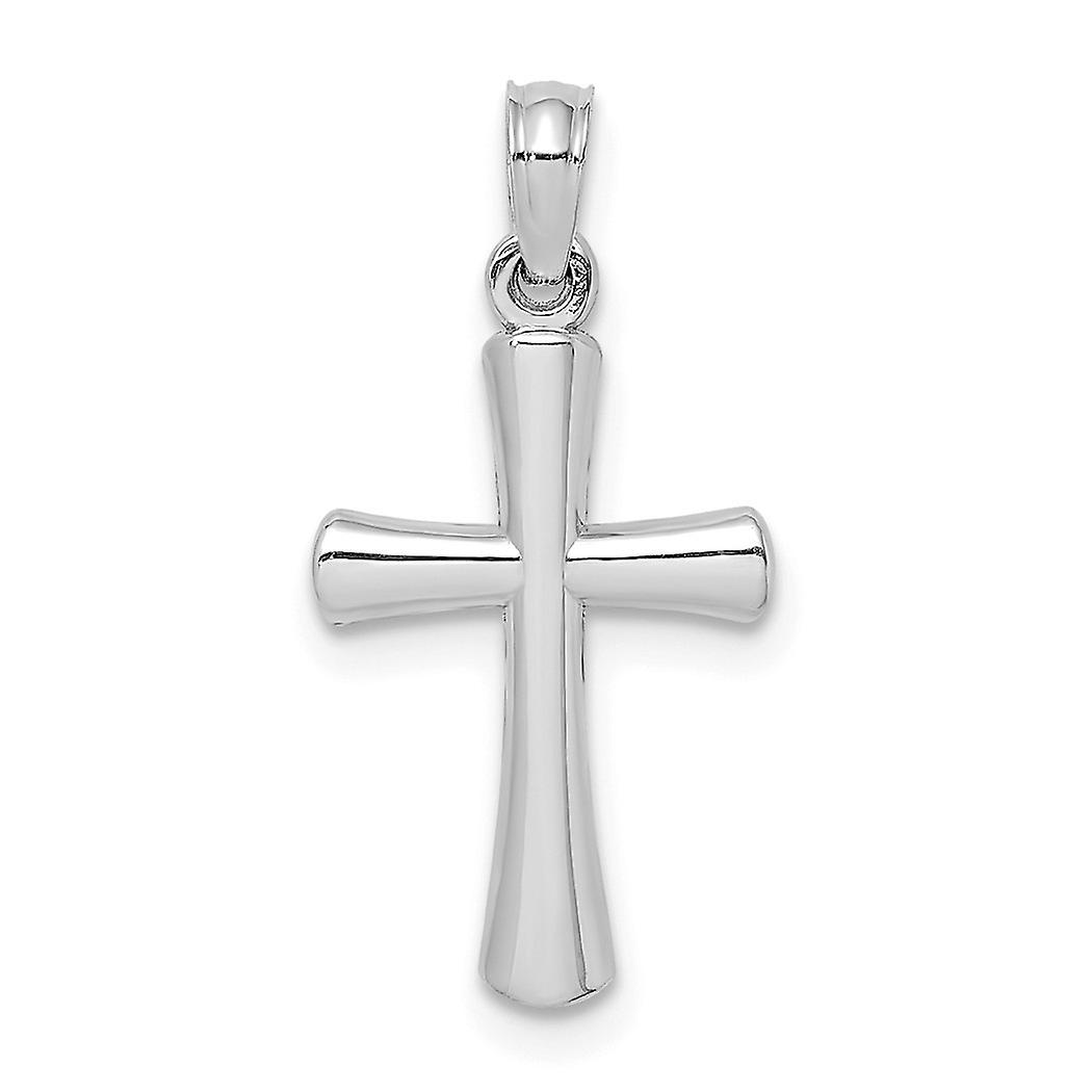 10k Gold White Beveled Religious Faith Cross With Round Tips High Polish 22.2x10mm Wide Pendant Necklace for Women