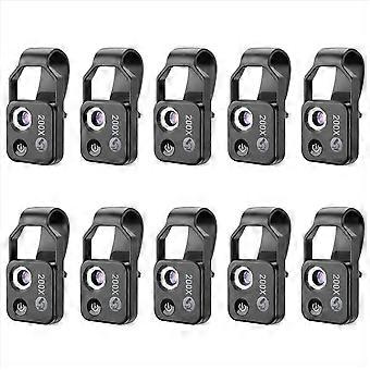 10pcs 200X Cell Phone Microscope Accessory with Window Microscope, Mini Digital Microscope with LED