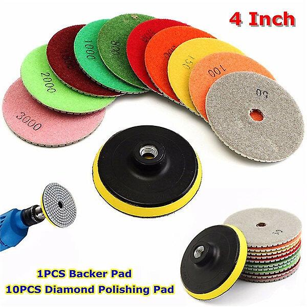 10Pcs 4 Inch 50 To 3000 Grit Diamond Polishing Pads With Backer Pad