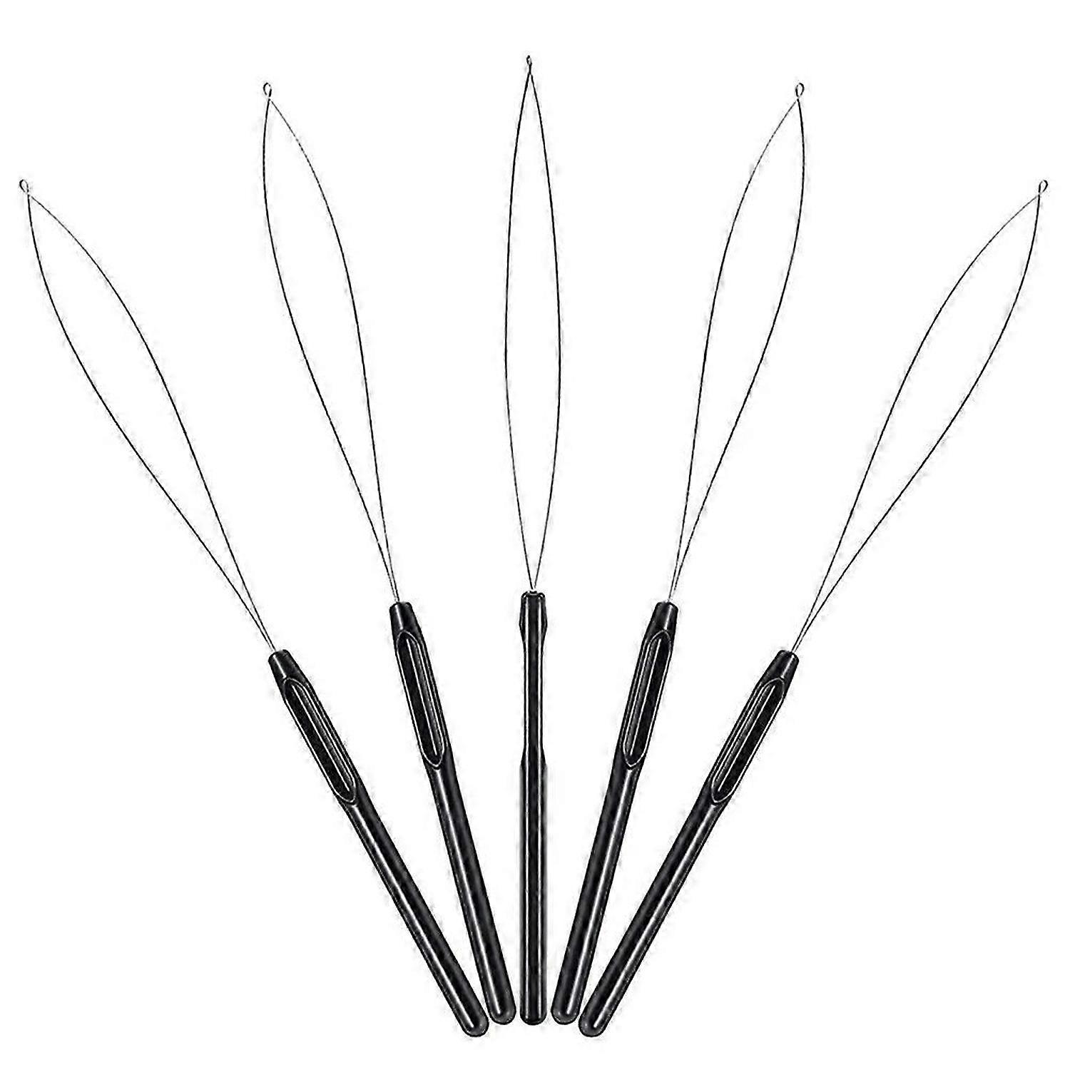 10Pcs Hair Extension Loop Threader Hook Tool and Bead Tool Black Loop Threader for Hair Extension or