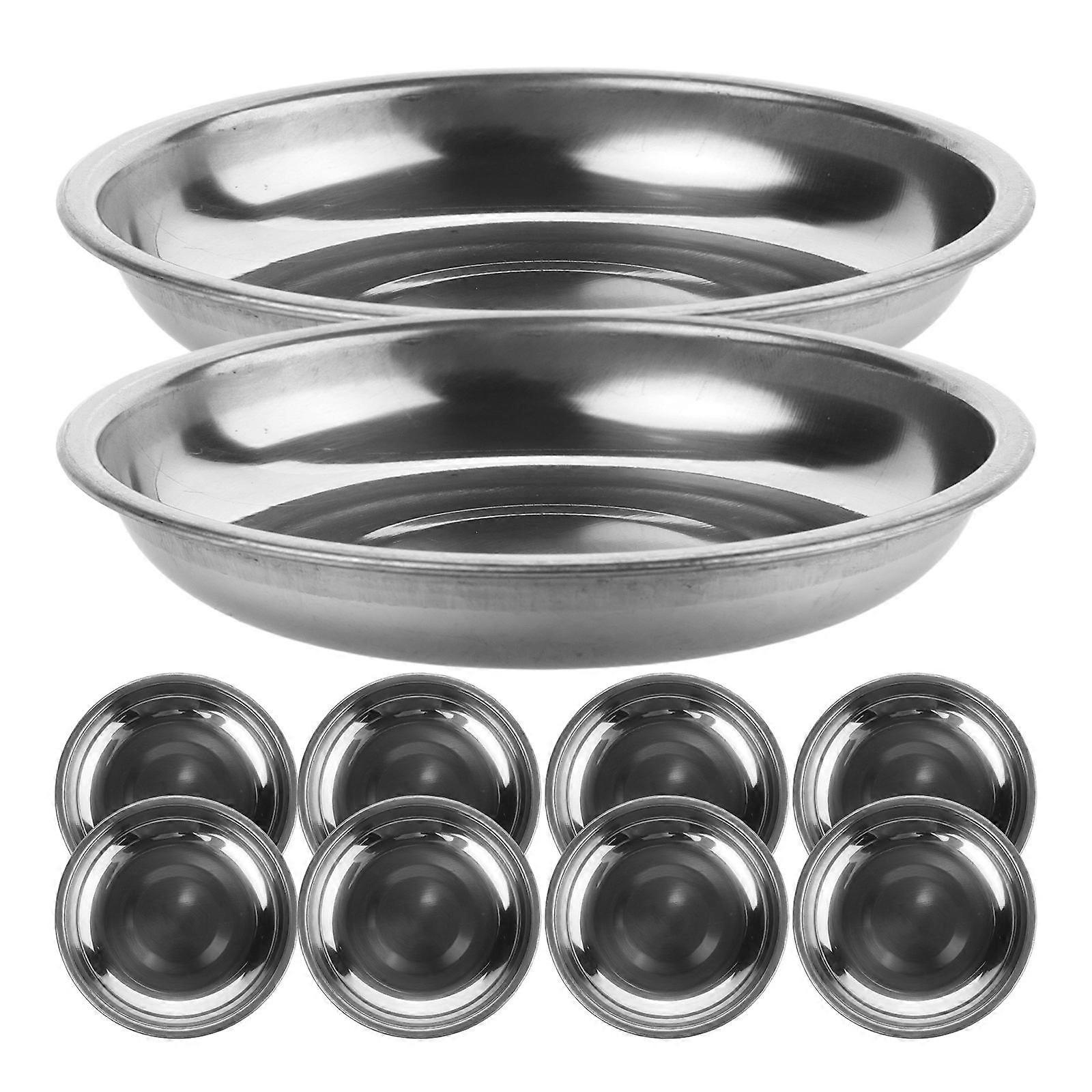 10pcs Small Plates Stainless Steel Seasoning Plates for Kitchen Use Silver 3inch