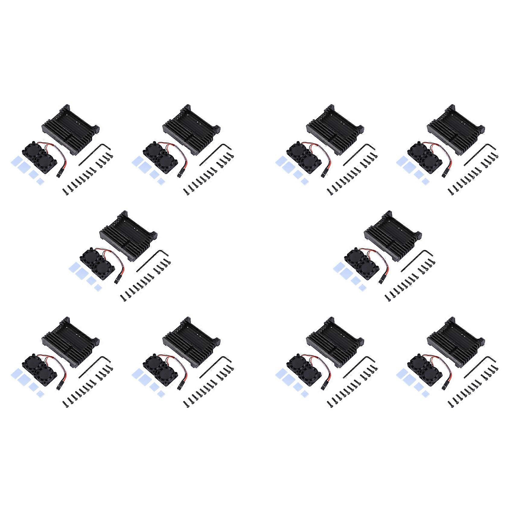 10X for Raspberry Pi 4 Aluminum Case with Dual Cooling Fan Metal Shell Black Enclosure for Raspberry Pi 4 Model B