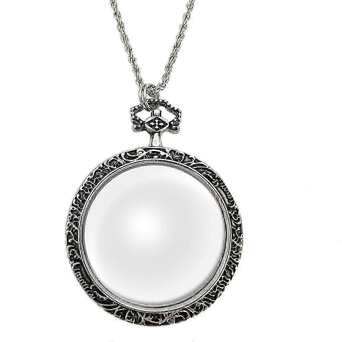 [ELEGANT DESIGN] This magnifying glass necklace can be matched with your different outfits, the classic pendant style makes the magnifying glass necklace more elegant and vintage, adding a of color to your everyday look while helping you read everything clearly.[ MATERIAL] Wearable magnifying glass necklace is composed of alloy chain and glass optical magnifying glass, strong and , can be used for a long time[PRACTICAL FEATURES]This magnifying glass necklace can magnify objects up to 10x, with a true reading magnification of 6.5x, providing an efficient way to read newspapers and maps, check documents, repair and install small parts; it's always available when you need magnification easily available is great.[SIZE] The magnifying optical glass lens is about 1.6 inches in diameter; the elegant pendant magnifying glass is small and portable, it can be easily hung around the neck and does not take up space; when you need it, you can in one go[PRACTICAL GIFT] This magnifying glass necklace is specially designed to magnify small objects, it is a great gift for the elderly or visually impaired, easy to read the small print in newspapers, patterns, coupons, etc. Kids can also use it to explore what Naturally stimulate their curiosity and interest in learning.Color: SilverMaterial: GlassPackage Contents:1 x Magnifying Glass NecklaceOnly the above package content, other products are not included.Note: Light reflection and different displays may cause the color of the item in the picture a little different from the real thing. The measurement allowed error is +/- 1-3cm.
