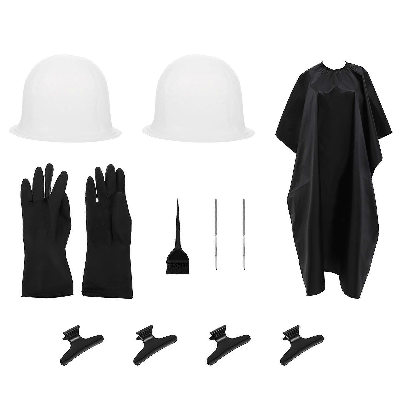 11Pcs Hair Highlight Coloring Dye Tools Kit with Silicone Caps Gloves and Cape