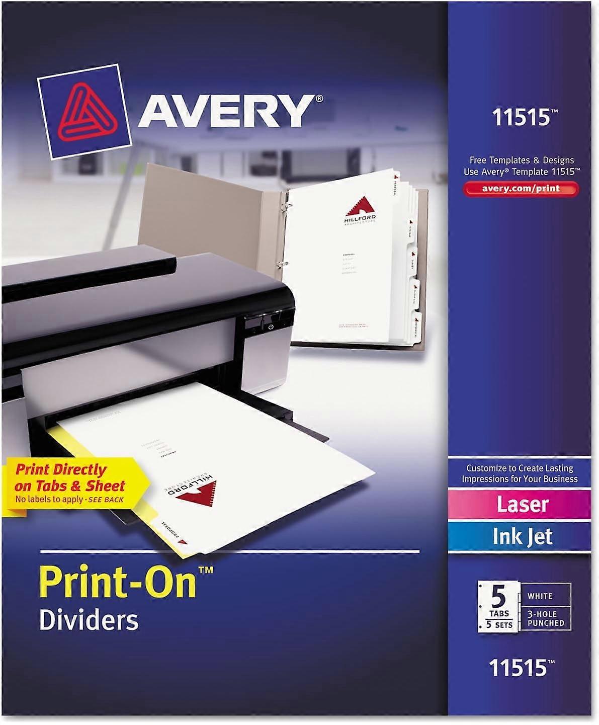 11515 Print-On Dividers, 8-1/2-Inch x11-Inch, 5TB/5ST, 5/PK, White